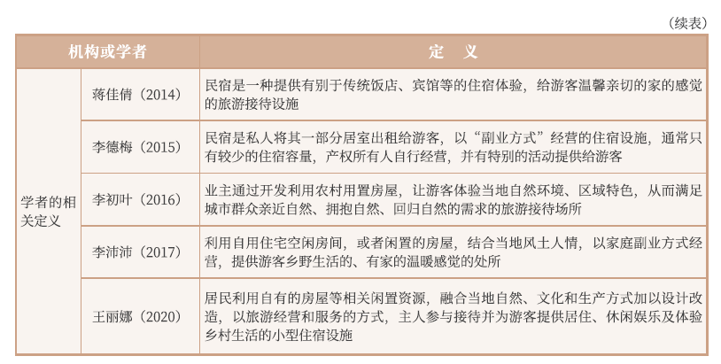 二、 相关部门及学者关于民宿的代表性定义