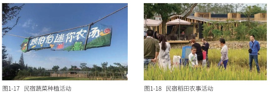 创意农业活动是乡村民宿的特色活动。乡村民宿依托当地农事生产活动,设计一系列 活动让客人能够参与到乡村农产品种植和加工过程中。例如,乡村民宿推出的体验蔬菜种 植活动(见图1-17)、稻田农事活动(见图1-18)。