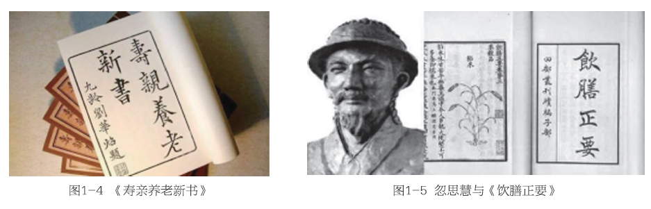 这一时期,中国饮食保健学得到进一步的发展和完善,并相继出现了一些学术水平较 高、影响较大的代表性著作。主要著作有《寿亲养老新书》《饮膳正要》等。《寿亲养老新书》(见图1-4)原为宋代陈直撰写,名为《养老奉亲书》,后经元代邹铉 续增,改名为《寿亲养老新书》。全书共四卷,是一部老年保健学著作。