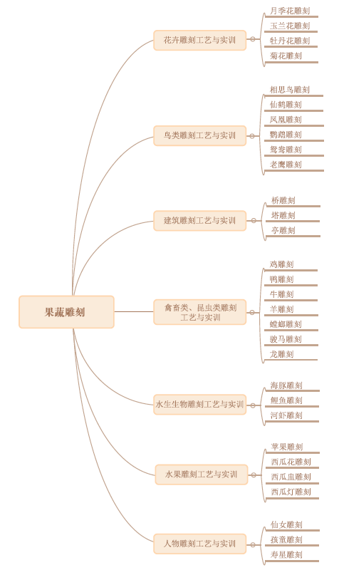熟知花卉类、鸟类、建筑类、水生生物、禽畜类及昆虫类等的相关文化知识、机体构造和雕刻 过程中的注意事项;熟练掌握果蔬雕刻的刀具选择、握刀手法及雕刻技法的运用。果蔬雕刻的基本 技能训练一般从花卉类雕刻、鸟类雕刻、建筑类雕刻等着手。学好果蔬雕刻是提高食品雕塑技能和效率的基本条件。